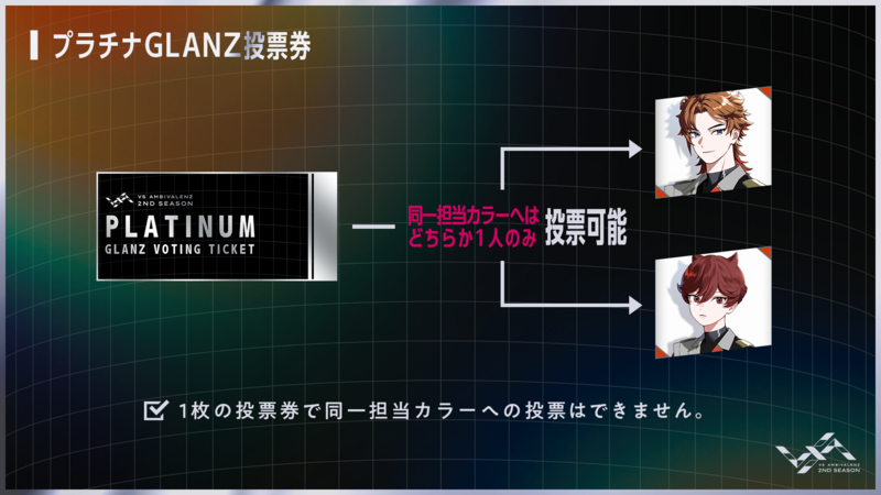 ・プラチナGLANZ投票券は1アカウントで複数枚使用することができます。