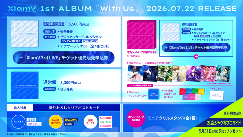 XlamV 1st ALBUM『With Us』、2026/7/22(水)発売決定!